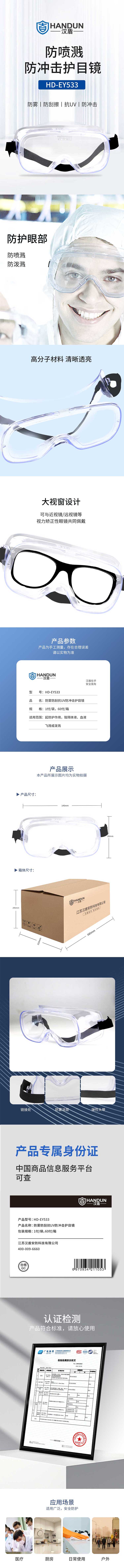 汉盾 HD-EY533 防雾防刮防冲击抗UV护目镜